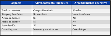 Esta diferenciación entre arrendamiento financiero y operativo no es meramente formal, sino que tiene importantes consecuencias en la estructura de las cuentas anuales. En los arrendamientos financieros se incrementan simultáneamente el activo y el pasivo de la empresa arrendataria, se registra la amortización del bien y se reconocen los intereses como gasto financiero. En cambio, en los arrendamientos operativos el efecto contable se limita al reconocimiento periódico de un gasto o ingreso por alquiler.